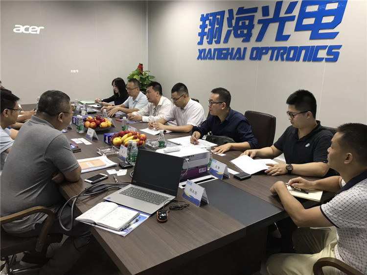 2018年11月22日上午佛山市南海區投資促進局副局長高瑞靈,陳劍勳等考察成員在佛山市南海區裡水鎮招商局週可局長的陪同下對翔海光電公司進行考察。 公司領導曹展豪,錢慶等親自接待並進行親切座談,在座談會上錢總對公司的發展進行詳細的解說,並解答考察團成員提出的所有問題;會議中曹總和錢總就公司發展階段對政府部門所提供的支持提出實際期望想法。